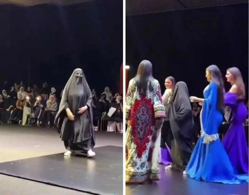 شاهد: سيدة منتقبة تظهر في عرض أزياء وتثير جدلا على مواقع التواصل.. والكشف عن هويتها الخليجية